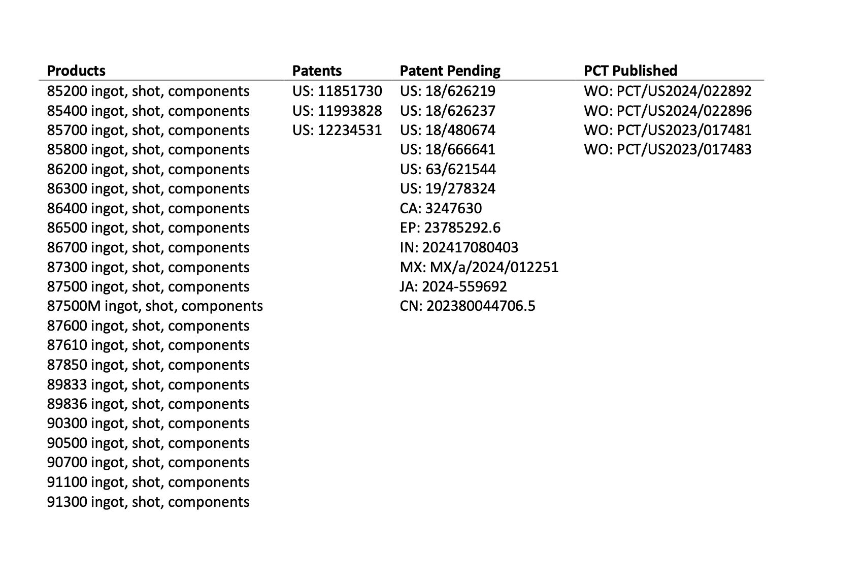 Our patented technology converts metal feedstock, including borings, into highly purified oxygen-free copper alloys with enhanced mechanical properties.